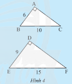 Cho hai tam giác vuông ABC và DEF có các kích thước như Hình 4.