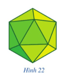 Thiết kế một đồ vật từ những hình có dạng đa giác đều. Chẳng hạn, vẽ trên giấy 20 hình tam giác đều bằng nhau rồi cắt ra và dán lại để tạo thành chao đèn (hình 20 mặt đều), như ở Hình 22.