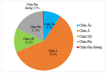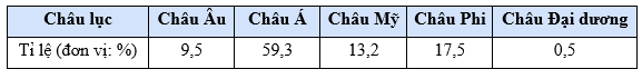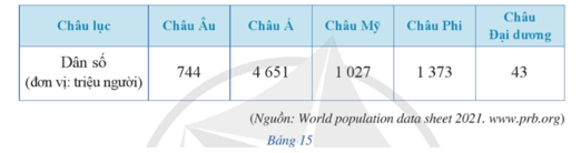 Bài 6 trang 15 Toán 9 Tập 2: Bảng 15 thống kê dân số thế giới phân theo các châu lục tính đến tháng 7/2021: