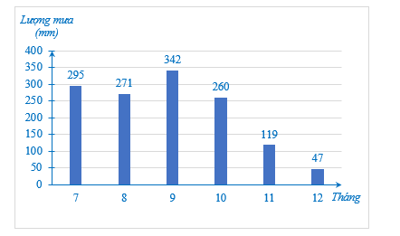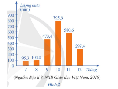 Hoạt động 2 trang 5 Toán 9 Tập 2: Biểu đồ ở Hình 2 biểu diễn lượng mưa tại trạm khí tượng Huế trong sáu tháng cuối năm dương lịch.