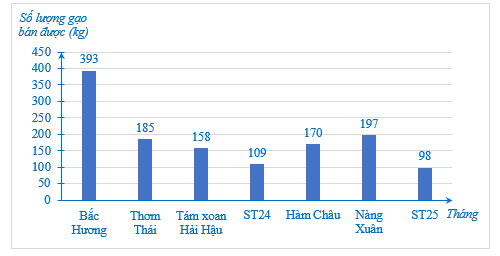 Bài 3 trang 14 Toán 9 Tập 2: Bảng 13 biểu diễn số lượng các loại gạo đã bán trong tháng 01/2023 của một đại lí kinh doanh gạo: