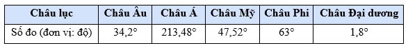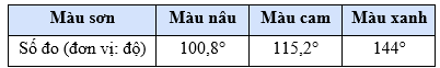 Từ các số liệu thống kê tính theo tỉ số phần trăm ở bảng trên, ta có các số đo cung tương ứng với các đối tượng thống kê ở bảng sau: