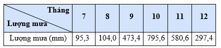 b) Tiêu chí thống kê là lượng mưa (mm) của mỗi tháng.