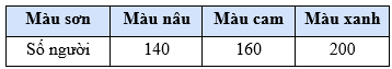 Bảng thống kê kết quả thăm dò ý kiến của 500 người mua hàng về màu sơn mà người mua yêu thích như sau: