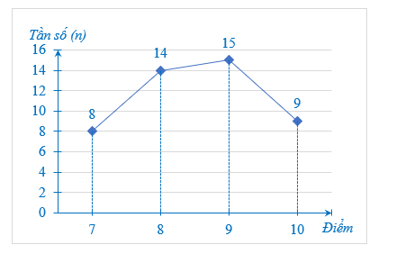 b) Biểu đồ tần số ở dạng biểu đồ đoạn thẳng của mẫu số liệu thống kê trên như sau: