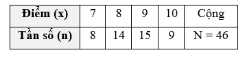 Bài 1 trang 23 Toán 9 Tập 2: Thống kê điểm sau 46 lần bắn bia của một xạ thủ như sau: