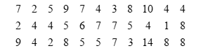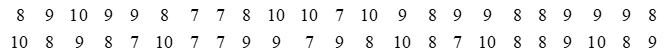 Tần số của các giá trị x1; x2; x3; x4; x5; x6; x7; x8; x9; x10; x11 lần lượt là n1 = 1; n2 = 3; n3 = 2; n4 = 7; n5 = 5; n6 = 1; n7 = 5; n8 = 5; n9 = 2; n10 = 1; n11 = 1.