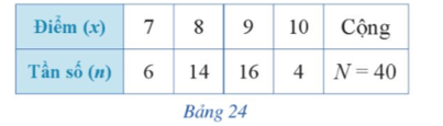 Bài 3 trang 23 Toán 9 Tập 2: Kết quả đánh giá chất lượng bằng điểm của 40 sản phẩm được cho trong Bảng 24.