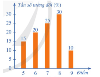 b) Biểu đồ tần số tương đối ở dạng biểu đồ cột của mẫu số liệu thống kê đó như sau: