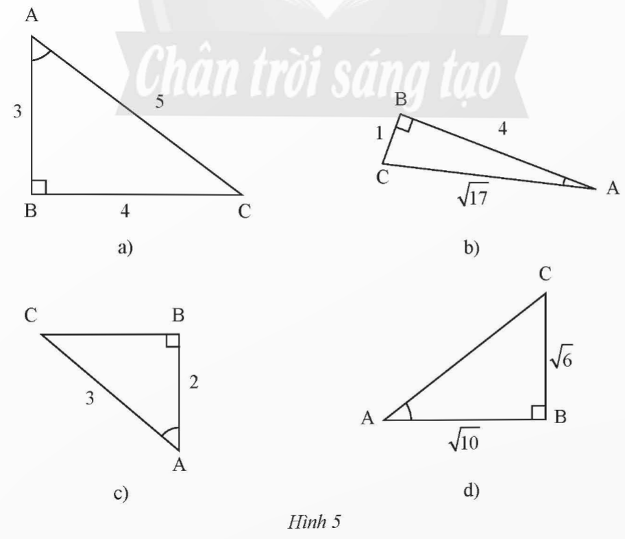 \(\widehat{B} =90^{\circ}\) ở Hình 5 (kết quả làm tròn đến hàng phần trăm).