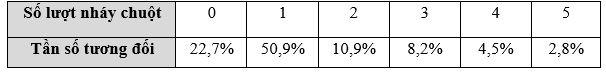 Bài 1 trang 37 Toán 9 Tập 2: Bảng sau thống kê số lượt nháy chuột vào quảng cáo ở một trang web vào tháng 12/2022.