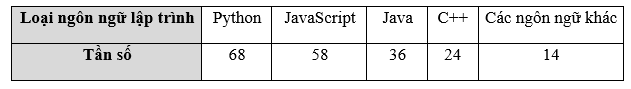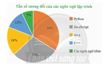 Bài 2 trang 37 Toán 9 Tập 2: Biểu đồ hình quạt dưới đây biểu diễn tần số tương đối của các ngôn ngữ lập trình được sử dụng khi viết bằng đúng một ngôn ngữ lập trình.