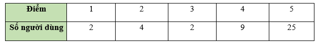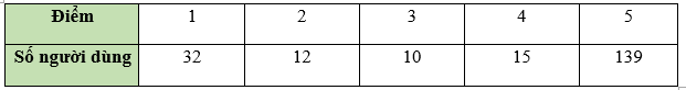 a) Bảng sau cung cấp điểm đánh giá của người dùng dành cho cửa hàng A.