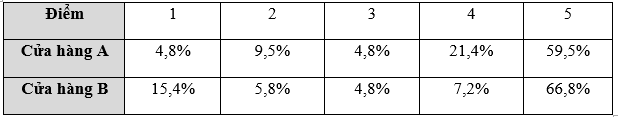Do số lượng người đánh giá dành cho mỗi cửa hàng A, B khác nhau nên ta không nên dựa vào số lượng người đánh giá để so sánh mà dựa trên tần số tương đối của từng điểm đánh giá ở từng cửa hàng.