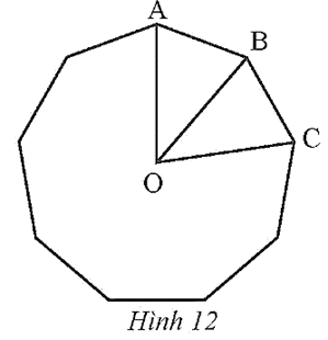 Cho đa giác đều 9 cạnh có tâm O và AB, BC là hai cạnh đa giác (Hình 12).
