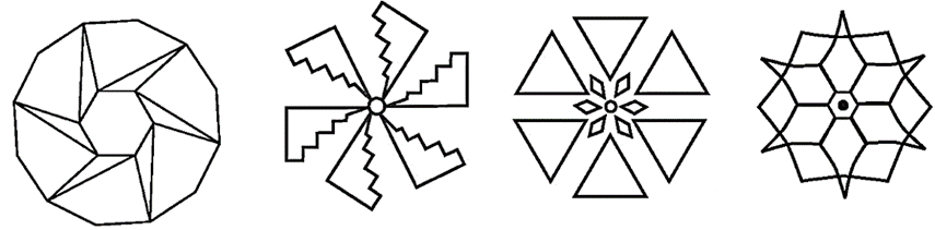 Gọi tên đa giác đều trong mỗi hình sau và tìm các phép quay có thể biến mỗi hình dưới đây thành chính nó.