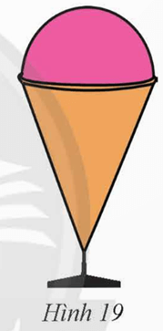 Phần bên trong của một cái li có dạng hình nón có bán kính đáy 2 cm, độ dài đường sinh 8 cm. Người ta đựng đầy kem trong li và thêm một nửa hình cầu kem phía trên (Hình 19). Tính thể tích của kem (kết quả làm tròn đến hàng đơn vị).