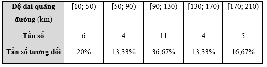 Bài 7 trang 50 Toán 9 Tập 2: Một bác lái xe muốn ghi lại tổng độ dài quãng đường (đơn vị: km) mình lái xe mỗi ngày trong vòng 1 tháng.