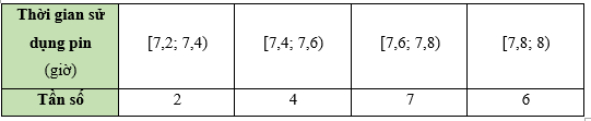 Số lượng máy tính có thời gian sử dụng từ 7,4 đến dưới 7,8 giờ là: 4 + 7 =11 (giờ).