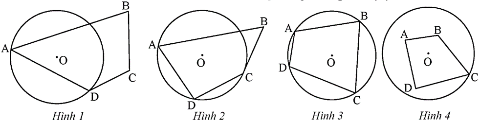 Trong 4 hình trên chỉ có Hình 3 là tứ giác nội tiếp đường tròn (O) vì cả 4 điểm A, B, C, D đều nằm trên đường tròn.