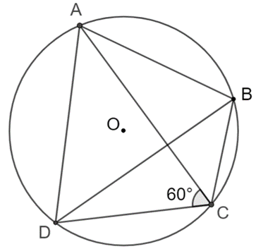 \(\widehat {ABD} = 180^\circ - \widehat {ACD} = 180^\circ - 60^\circ = 120^\circ\)