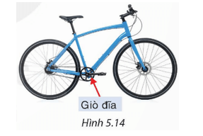 Bánh xe (khi bơm căng) của một chiếc xe đạp có đường kính 650 mm. Biết rằng khi giò đĩa quay một vòng thì bánh xe đạp quay được khoảng 3,3 vòng (H.5.14). Hỏi chiếc xe đạp di chuyển được quãng đường dài bao nhiêu mét sau khi người đi xe đạp 10 vòng liên tục?