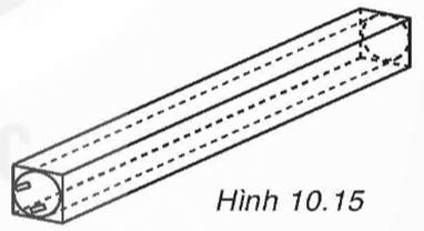 Một bóng đèn huỳnh quang có dạng hình trụ được đặt khít vào một hộp giấy cứng dạng hình hộp chữ nhật (H.10.15). Hộp giấy có chiều dài bằng 0,6 m, đáy là hình vuông cạnh 4 cm. Tính diện tích xung quanh và thể tích của bóng đèn (giả sử bề dày của hộp giấy không đáng kể).