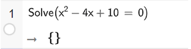 Ta nhập Solve (x^2 – 4x + 10 = 0), ta thu được kết quả như hình vẽ.