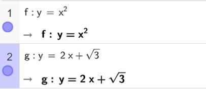 a) Nhập công thức hàm số y = x2 và y = 2x +
