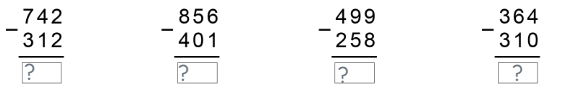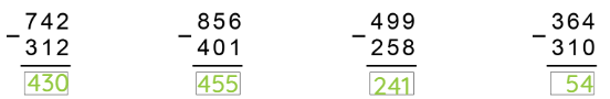 Thực hiện trừ lần lượt từ phải sang trái (trừ các chữ số hàng đơn vị, rồi đến các chữ số hàng chục và chữ số hàng trăm).