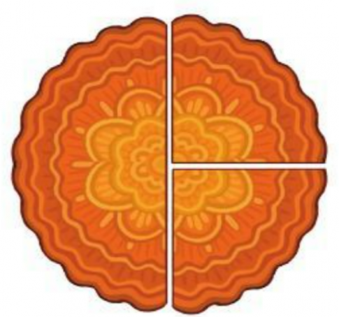 \(\frac{1}{4}\) chiếc bánh. Em hãy chỉ giúp hai bạn phần bánh thích hợp ở hình bên.