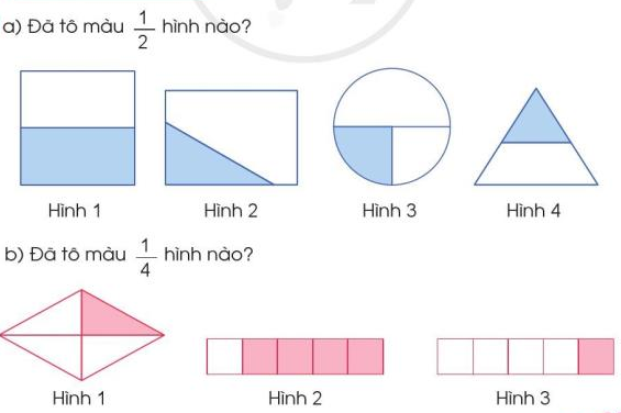 Toán lớp 3 trang 56, 57, 58 Một phần hai, một phần tư Cánh Diều