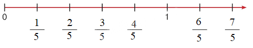 \(\frac{1}{5}\) đơn vị. Từ đó em viết các phân số còn thiếu.