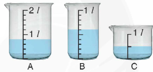 Quan sát hình vẽ để xác định số phần lít nước có trong mỗi bình.