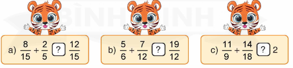 \(\frac{8}{{15}} + \frac{2}{5} = \frac{8}{{15}} + \frac{6}{{15}} = \frac{{14}}{{15}}\). Ta có