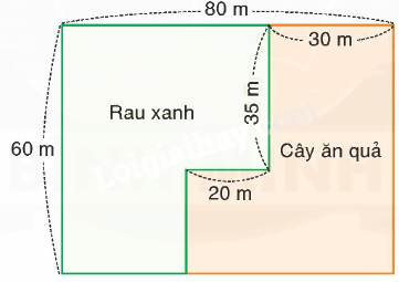 b) Diện tích mảnh đất trồng cây ăn quả và rau xanh là 80 x 60 = 4800 (m2)