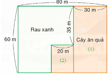 a) Chia mảnh đất trồng cây ăn quả thành các mảnh (1) và (2) như hình dưới đây: