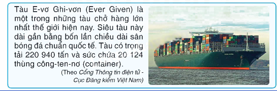 b) Tàu E-vơ Ghi-vơn có sức chứa khoảng 20 000 công-ten-nơ.