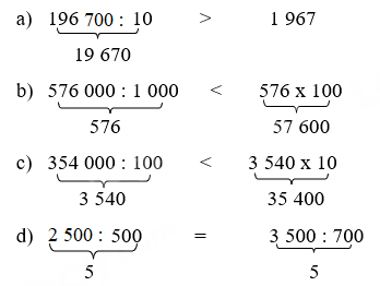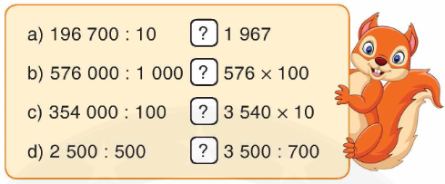 Tính nhẩm giá trị của 2 vế rồi điền dấu thích hợp