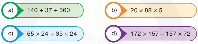 - Áp dụng tính chất giao hoán, kết hợp của phép cộng, phép nhân để nhóm hai số có tổng hoặc tích là số tròn trăm với nhau.