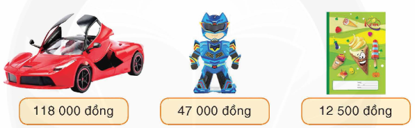 Gia Khánh mua 1 chiếc ô tô đồ chơi, 1 siêu nhân và 6 quyển vở. Gia Khánh đưa cho cô bán hàng một tờ tiền mệnh giá 500 000 đồng. Như vậy, cô bán hàng cần trả lại cho Gia Khánh số tiền là ? đồng.