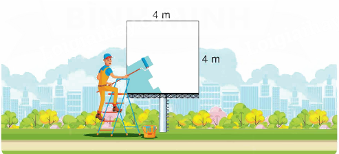 Câu 4: Cần bao nhiêu ki-lô-gam sơn để sơn hai mặt biển quảng cáo hình vuông như hình dưới đây? Biết rằng sơn 8 m2 mặt tấm biển thì hết 1 kg sơn.