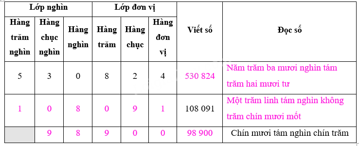 - Viết số theo từng lớp, lần lượt từ hàng trăm nghìn, hàng chục nghìn, hàng nghìn, hàng trăm, hàng chục, hàng đơn vị