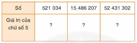 Xác định hàng của chữ số 5 trong mỗi số từ đó tìm được giá trị tương ứng.