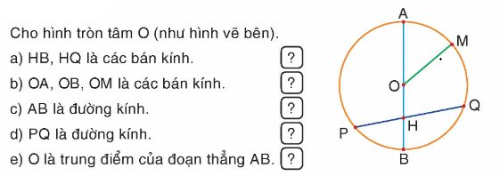 Quan sát hình vẽ rồi xác định tính đúng, sai của mỗi câu