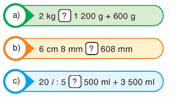 Đổi về cùng 1 đơn vị đo rồi điền dấu thích hợp.