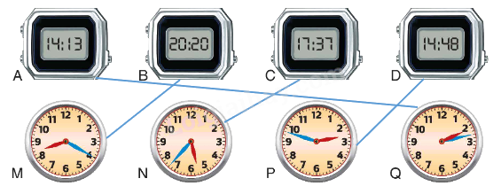 Câu 1. Vào buổi chiều hoặc buổi tối, những đồng hồ nào dưới đây chỉ cùng một thời gian?