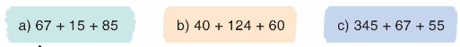 b) 40 + 124 + 60 = (40 + 60) +124