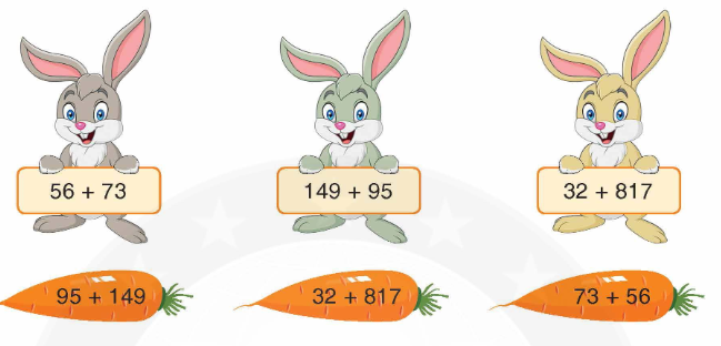 Áp dụng tính chất giao hoán của phép cộng: Khi đổi chỗ các số hạng trong một tổng thì tổng không đổi.