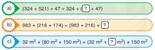 c) 32 m2 + (80 m2 + 150 m2) = (32 m2 + 80 m2) + 150 m2